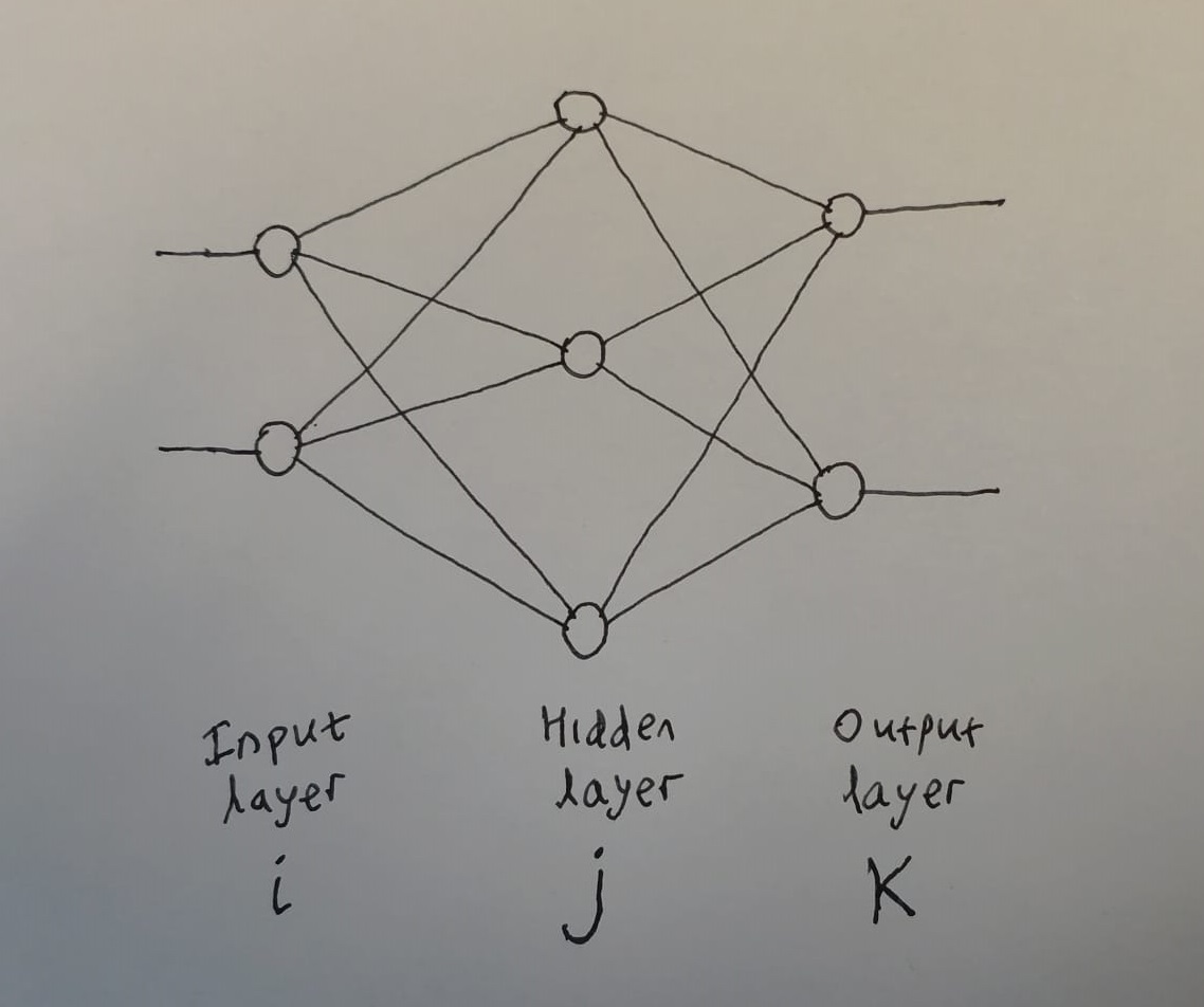 As we work backwards, the situation changes. yj feeds forward into all of the output nodes. Since:
